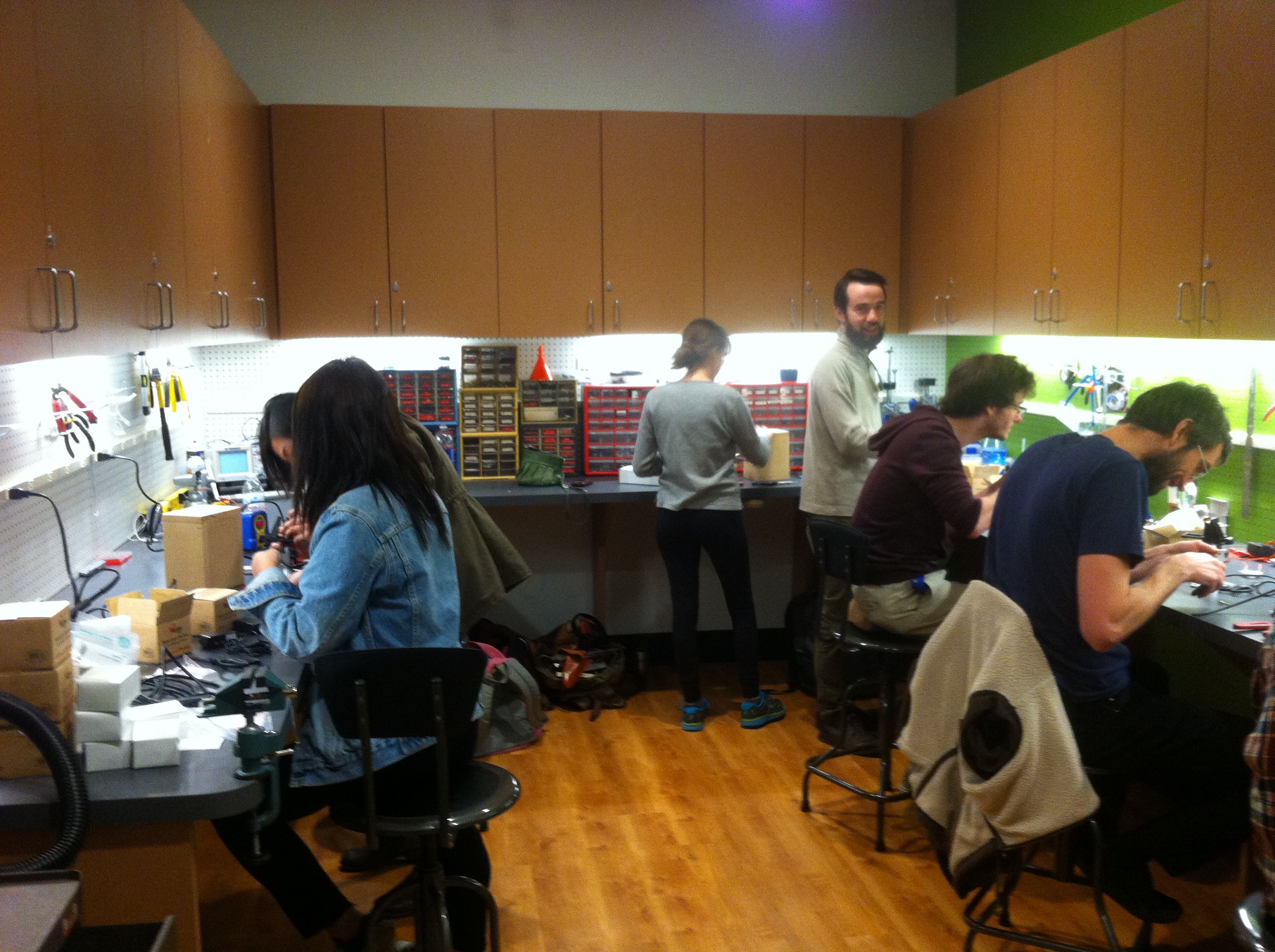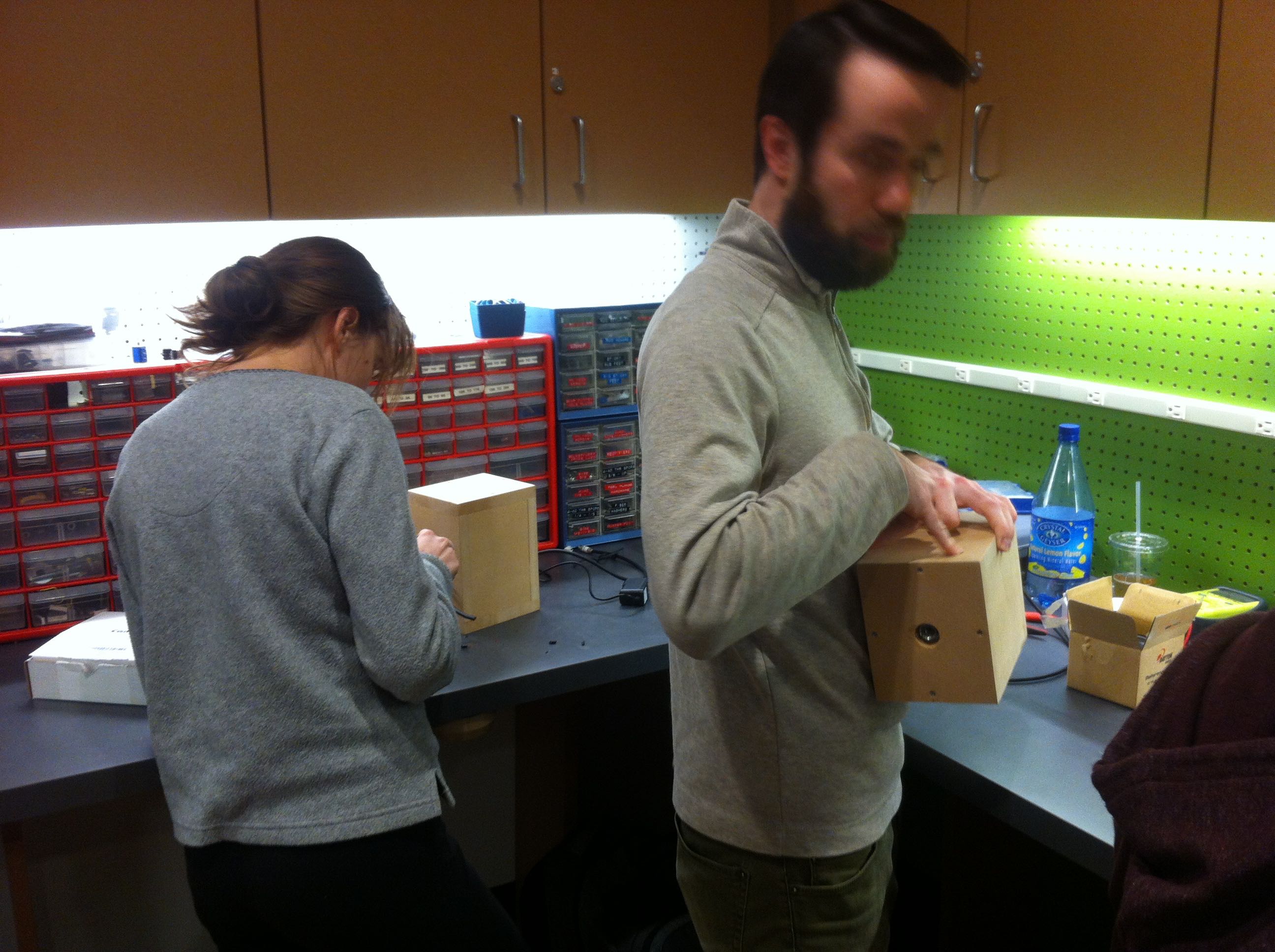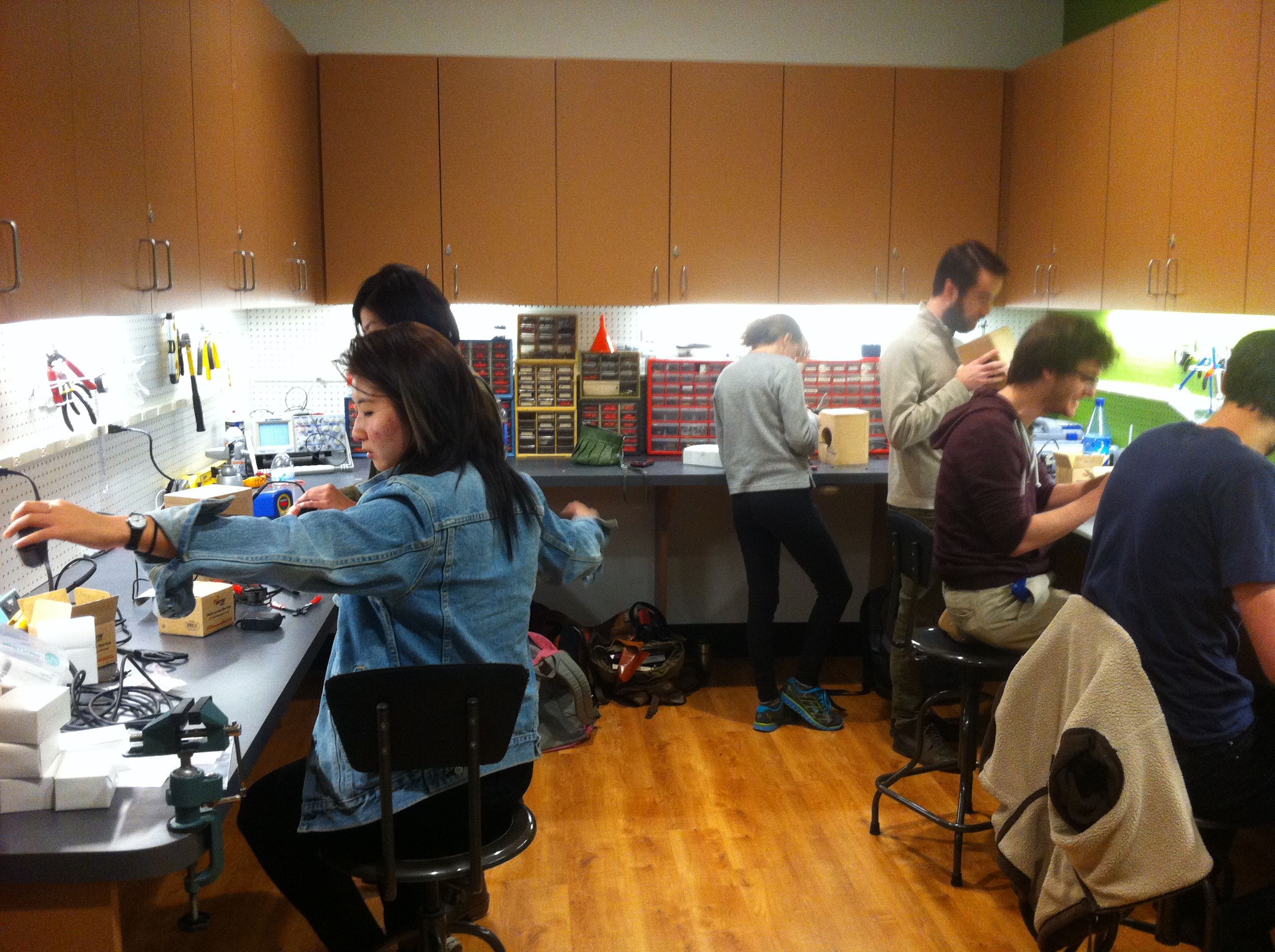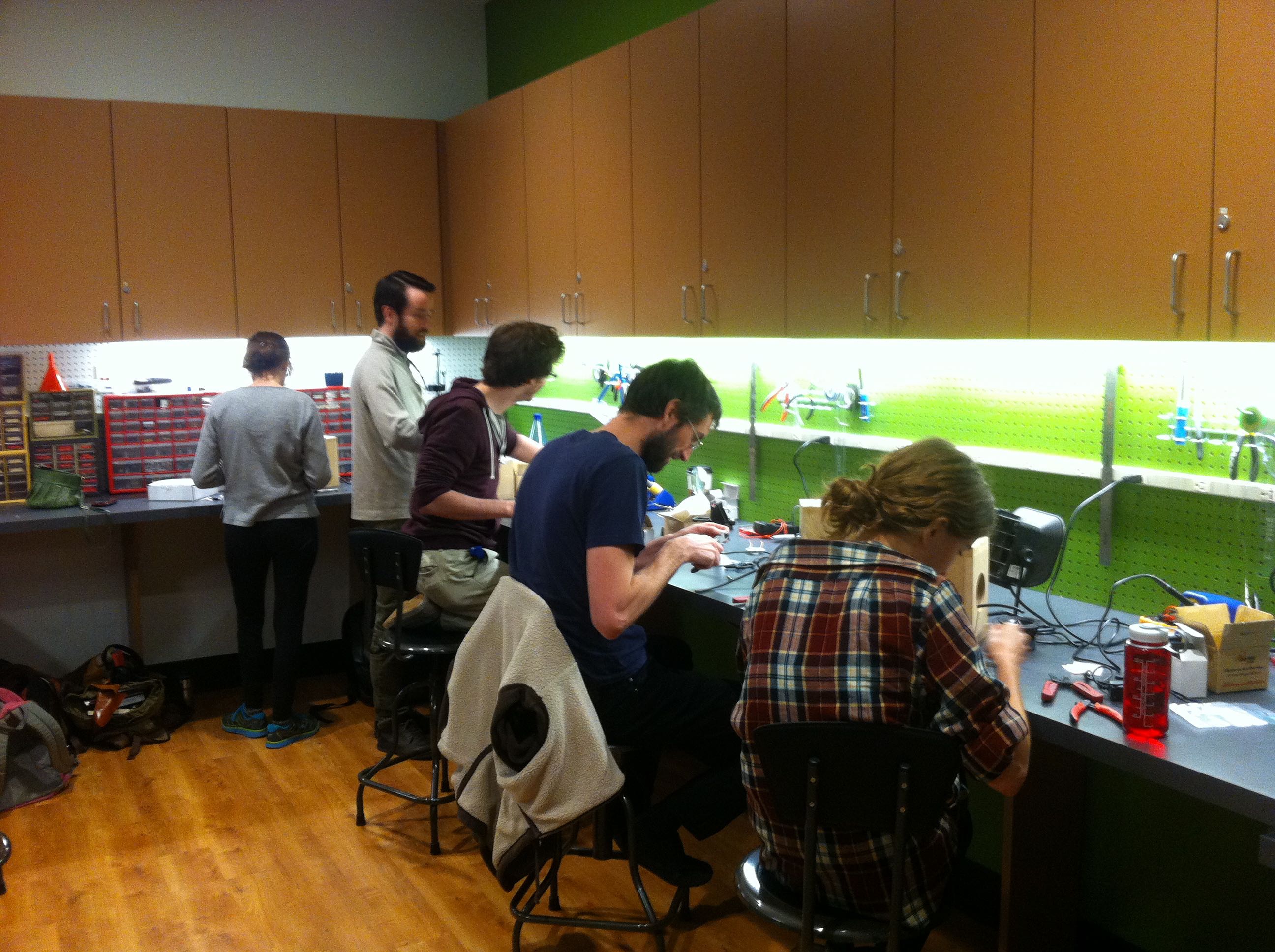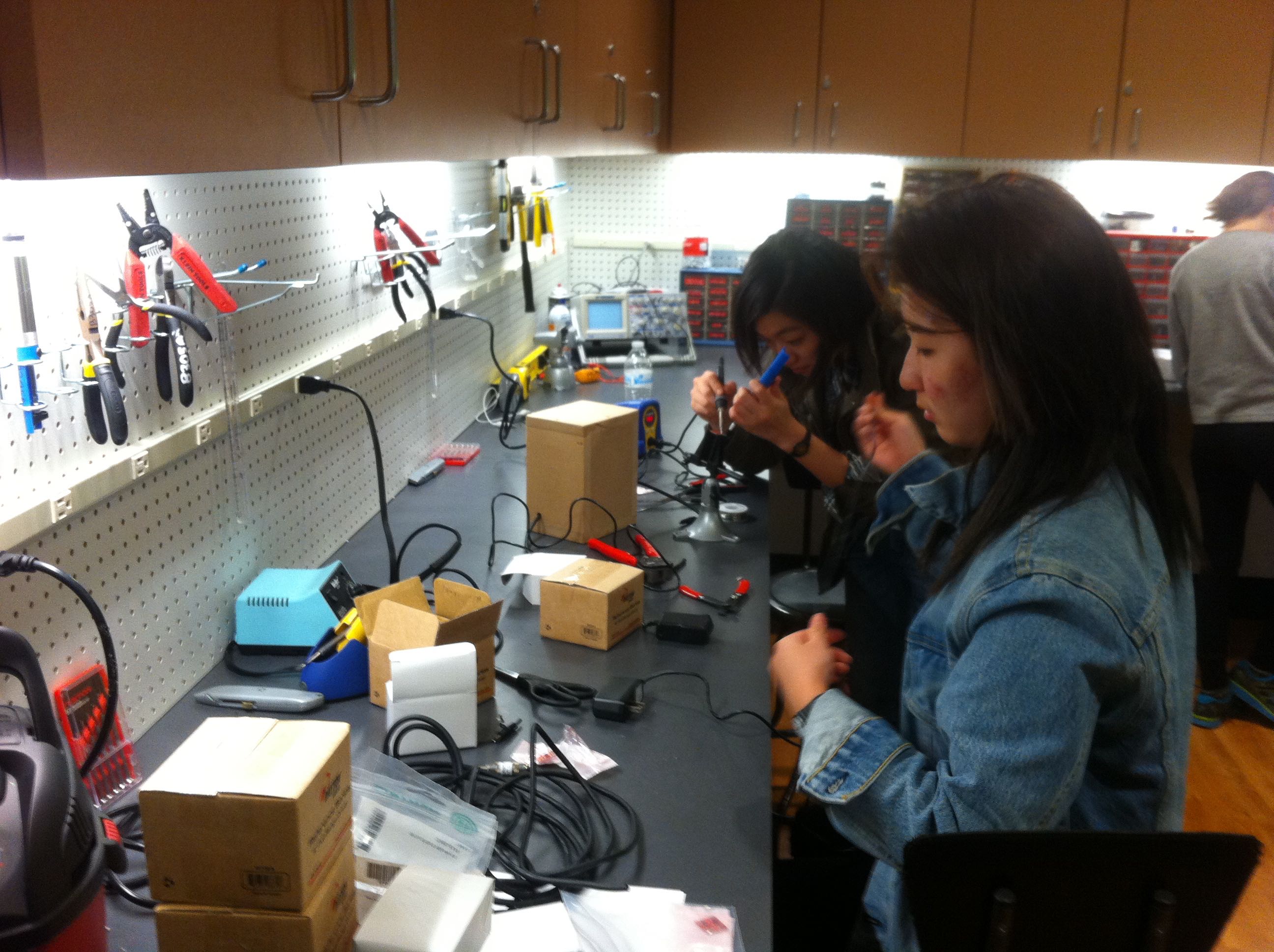 In the Fall of 2014, students in the Networked Music Performance Ensemble class built their own speakers. Students cut, put together, painted, sanded and stained speaker cabinets to house the driver and small amplifier. Once the speakers were completed, the class used them in conjunction with Raspberry Pi computers to create networked-based compositions to be performed by the ensemble.