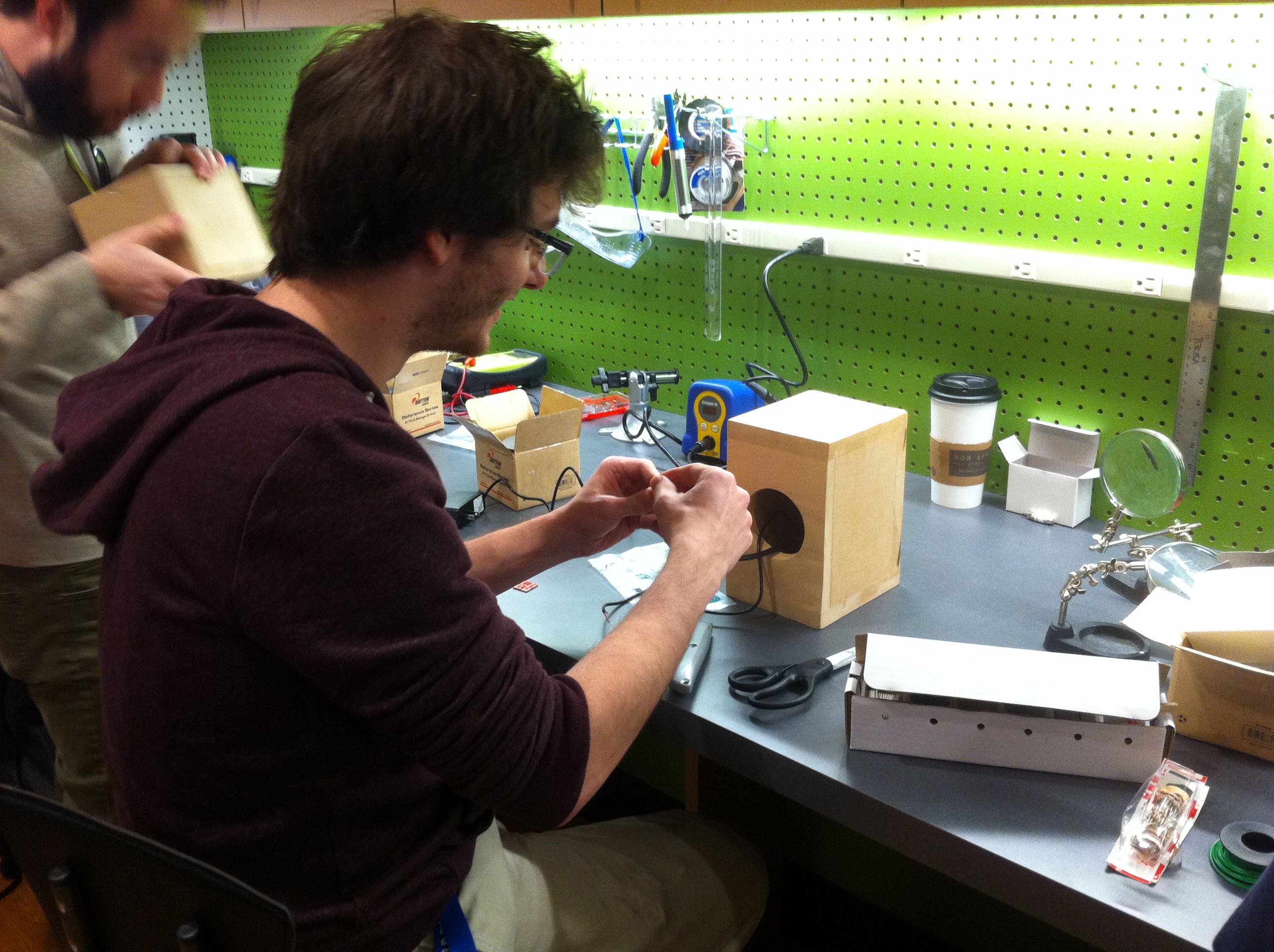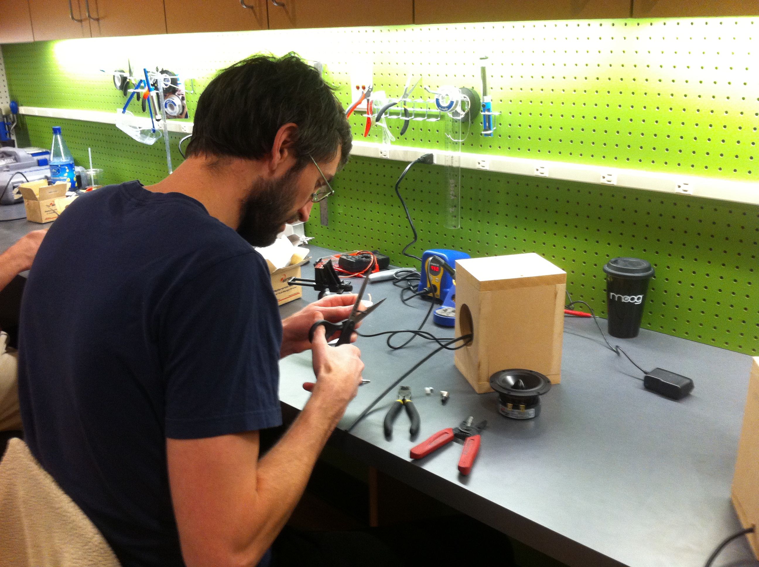 Custom synthesizer desiginer and electronic musician Peter Blasser gave an all-day workshop on March 9th, 2015 for ESP, Music Tech, and Composition students. Peter provided the students with kits for his Mr. Grassi paper-circuit syntheiszer and helped the students build their own synths. Peter also gave a presentation on his current work and creative interests.